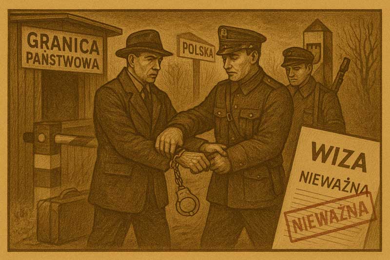 Zatrzymano obywatela niemieckiego, który przekroczył granicę do Polski po wygaśnięciu ważności wizy. XII. SZPIEGOSTWO I DYWERSJA. Sprawozdanie negatywne.