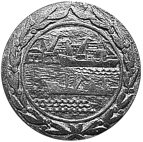 R/ W wewnętrznym kole o średnicy 58 mm dwa statki na falach, w tle dźwigi portowe. W szerokim otoku gałązki wawrzynu.