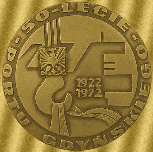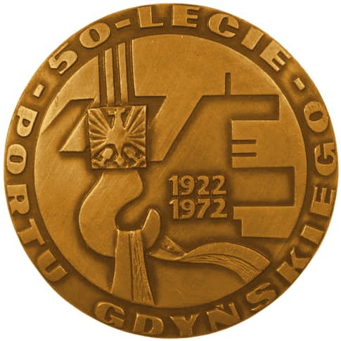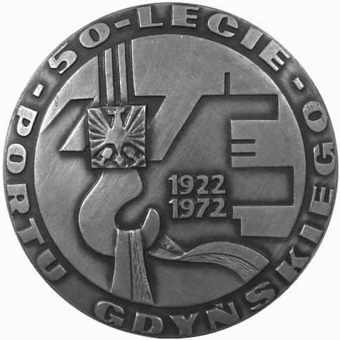 A/ Na gładkiej powierzchni stylizowane baseny portowe. Po lewej hak dźwigu z „biało-czerwoną” wstęgą i godłem państwowym. Po prawej daty 1922/1972. W nieco zagłębionym otoku napis 50-LECIE PORTU GDYŃSKIEGO.