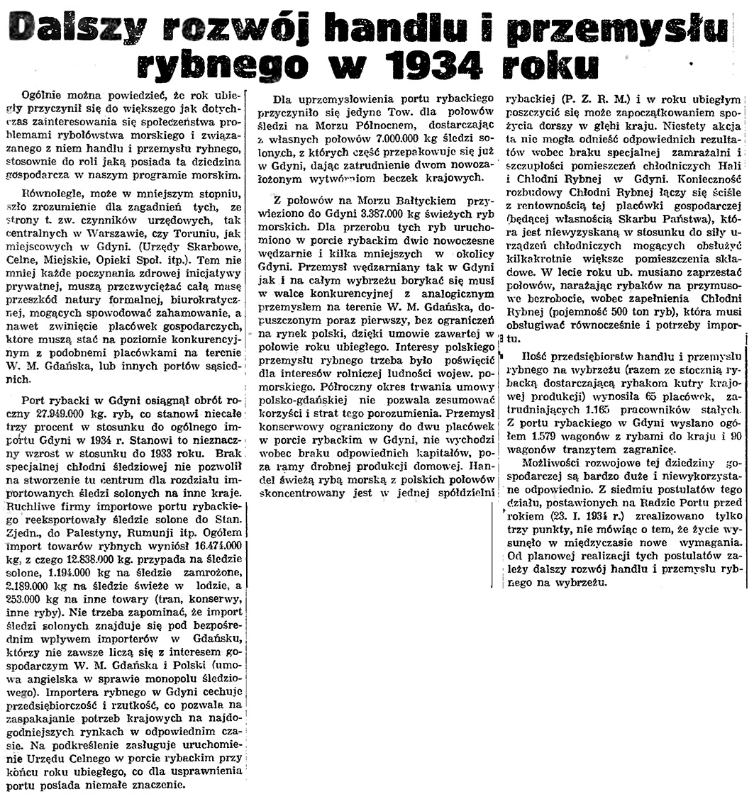 Dalszy rozwój handlu i przemysłu rybnego w 1934 roku