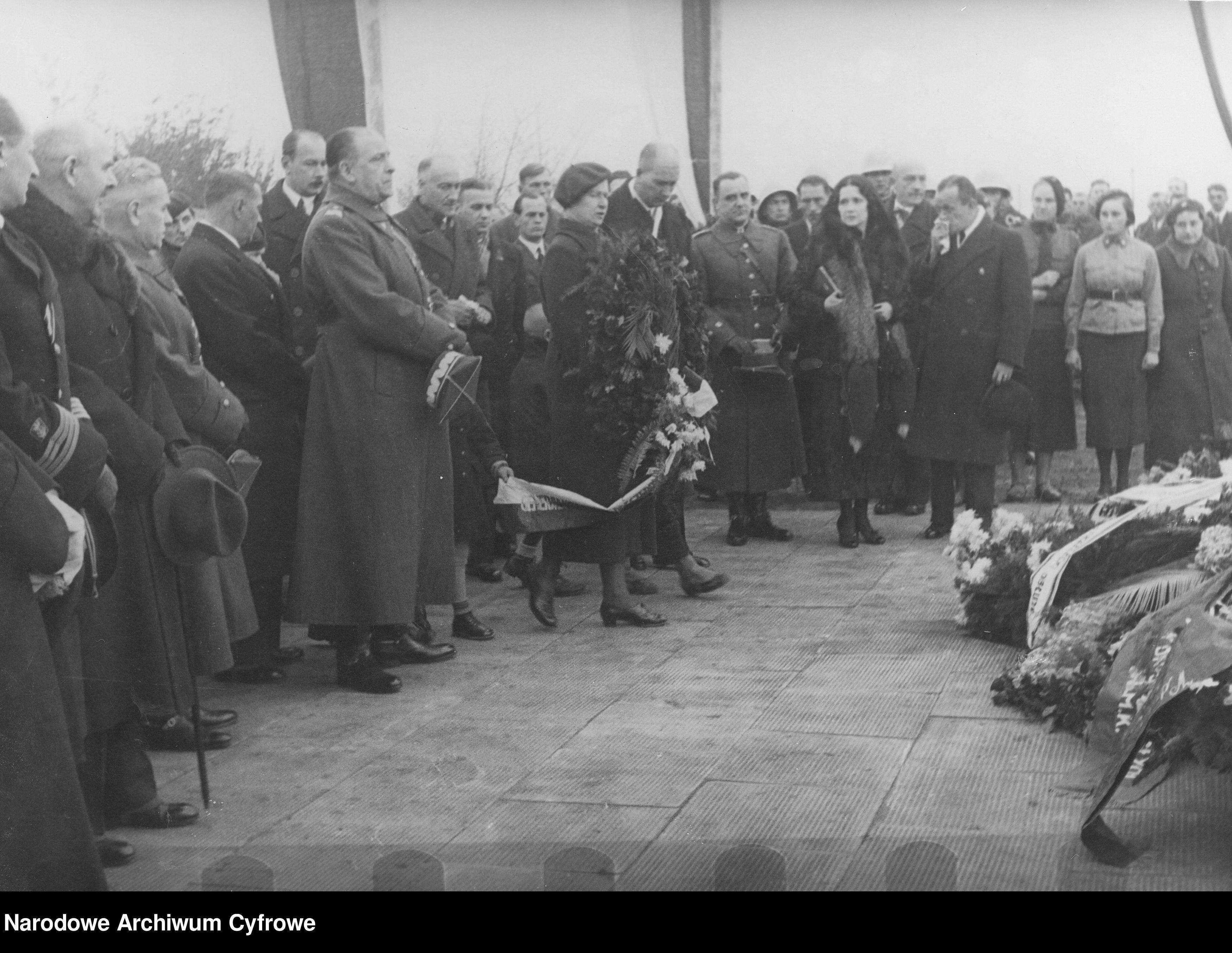 Składanie wieńców na grobie. Widoczni m.in. gen. Stanisław Kwaśniewski, żona Elwina Orlicz-Dreszer, brat Julian Dreszer