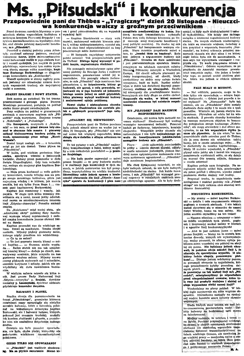 Ms. “Piłsudski” i konkurencja. Przepowiednie pani de Thebes – “Tragiczny” dzień 20 listopada – Nieuczciwa konkurencja walczy z groźnym przeciwnikiem