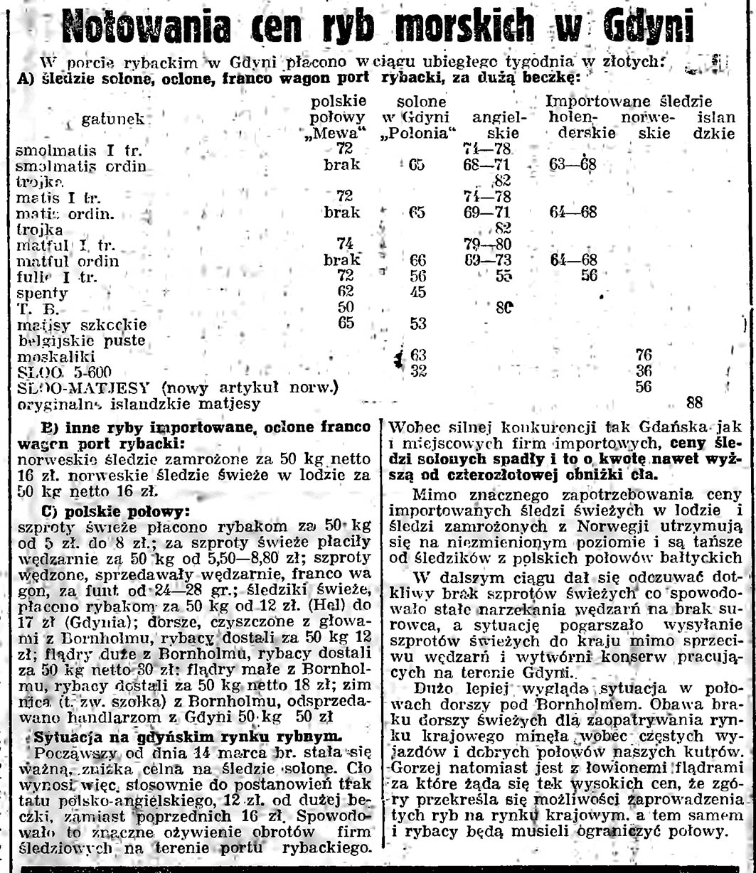Notowania cen ryb morskich w Gdyni