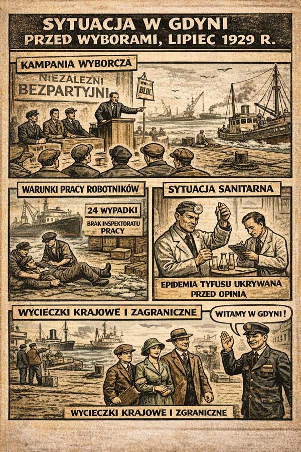 Kampania wyborcza w Gdyni w 1929 r. przebiegała spokojnie, mimo problemów organizacyjnych, złych warunków pracy i ukrywanej sytuacji sanitarnej.