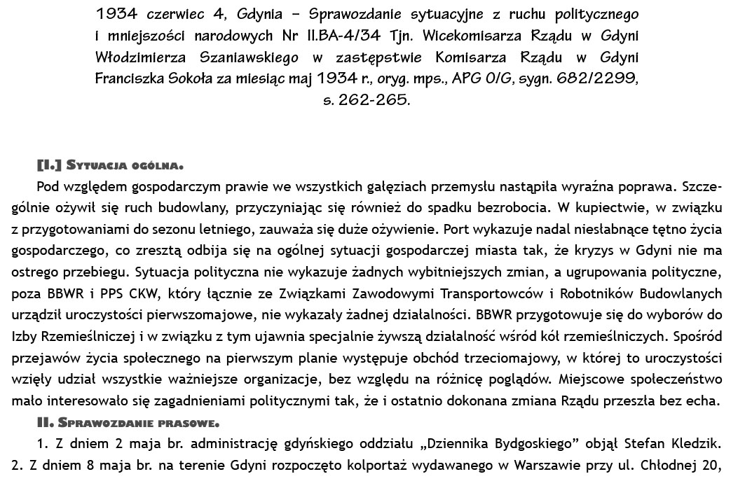 1934 czerwiec 4, Gdynia – Sprawozdanie sytuacyjne z ruchu politycznego