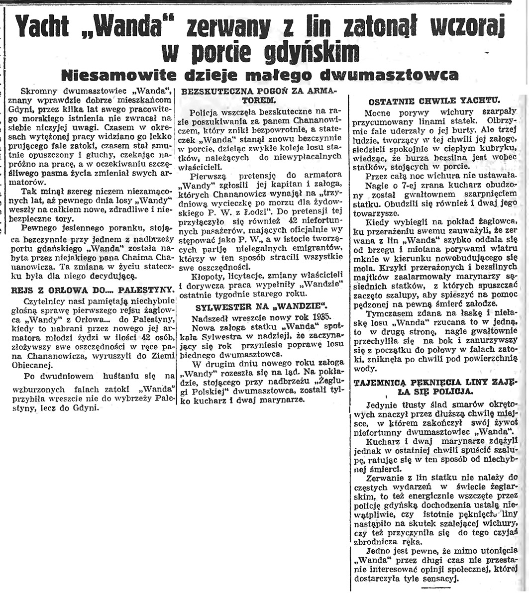 Uacht “Wola” zerwany z lin zatonął wczoraj w porcie gdyńskim